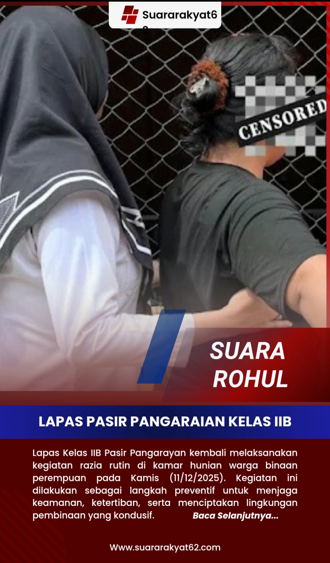 ROKAN HULU, SUARARAKYAT62 – Lapas Kelas IIB Pasir Pangarayan kembali melaksanakan kegiatan razia rutin di kamar hunian warga binaan perempuan pada Kamis (11/12/2025). Kegiatan ini dilakukan sebagai langkah preventif untuk menjaga keamanan, ketertiban, serta menciptakan lingkungan pembinaan yang kondusif.