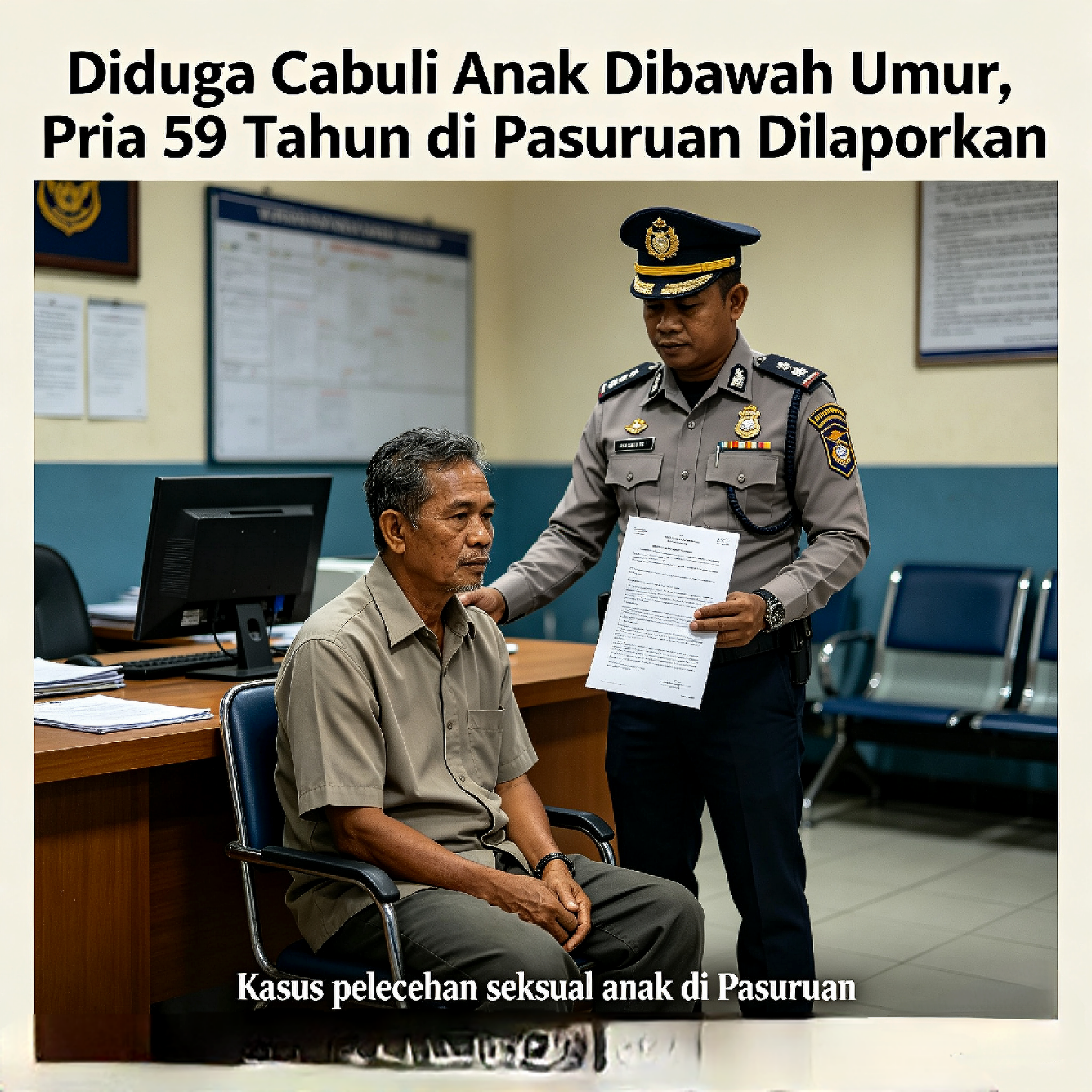 Seorang pria 59 tahun berinisial PJO dilaporkan ke Polres Pasuruan Kota atas dugaan pencabulan terhadap anak di bawah umur. Laporan itu dibuat ibu korban pada Minggu, 26 April 2026.