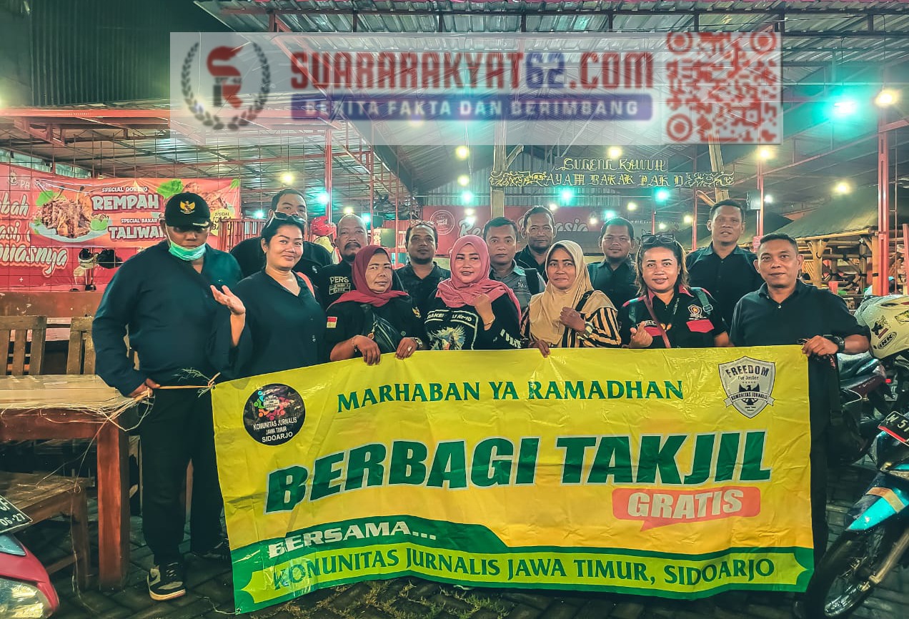 Sidoarjo – Suararakyat62.com – Bulan suci Ramadan menjadi momentum yang penuh berkah bagi seluruh umat Muslim di seluruh dunia, termasuk para insan pers yang tergabung dalam Komunitas Jurnalis Jawa Timur (KJJT). Dalam rangka mempererat tali silaturahmi dan meningkatkan kepedulian sosial, KJJT Sidoarjo menggelar serangkaian kegiatan mulai dari pembagian 1.200 paket takjil, buka puasa bersama, hingga pembentukan kepengurusan baru untuk periode mendatang.