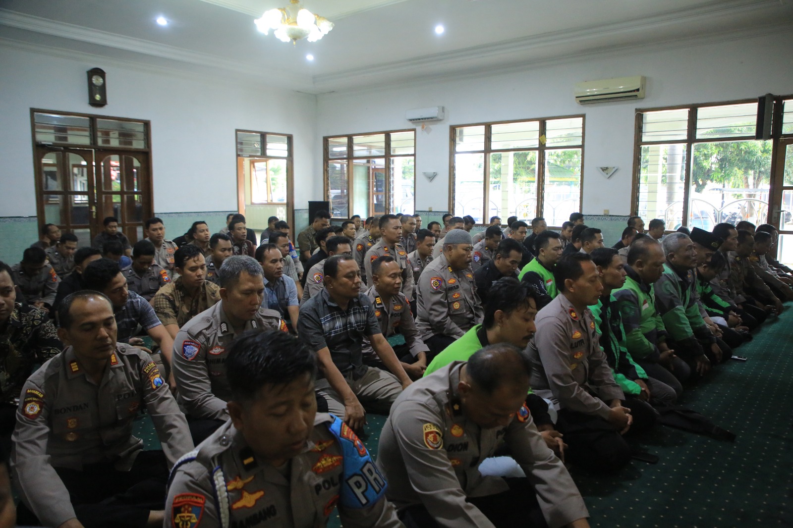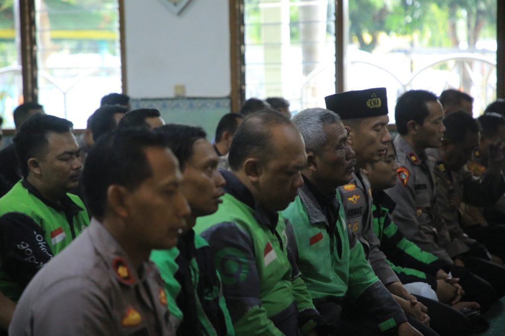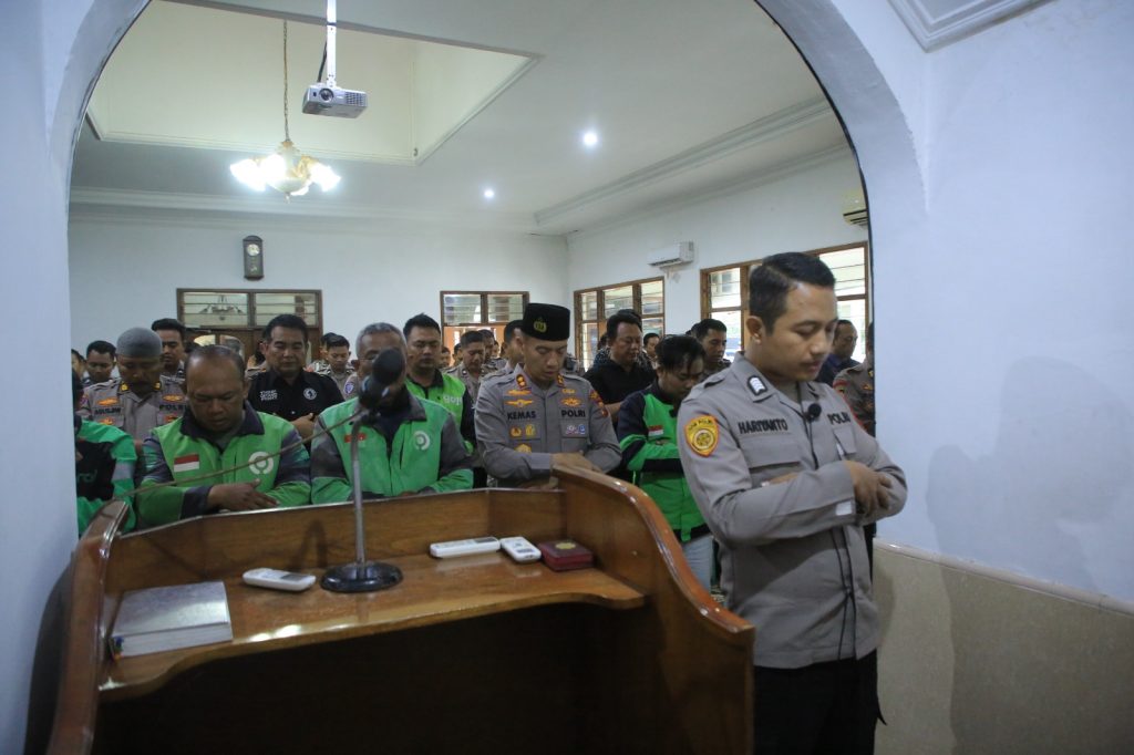 Kegiatan berlangsung penuh khidmat di Masjid At-Taqwa Polres Madiun, seusai salat Ashar pada Jumat (29/8/2025). Kapolres Madiun, AKBP Kemas Indra Natanegara, S.H., S.I.K., M.Si., tampak berdampingan dengan komunitas ojol Madiun di saf depan, mengikuti salat gaib yang dipimpin imam masjid.