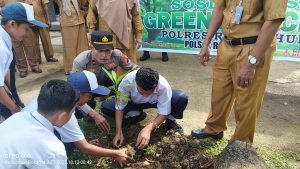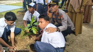 Tak hanya memberi pesan moral, Kapolsek bersama para siswa dan guru juga melakukan penanaman pohon di lingkungan sekolah, sebagai bentuk kepedulian terhadap alam.