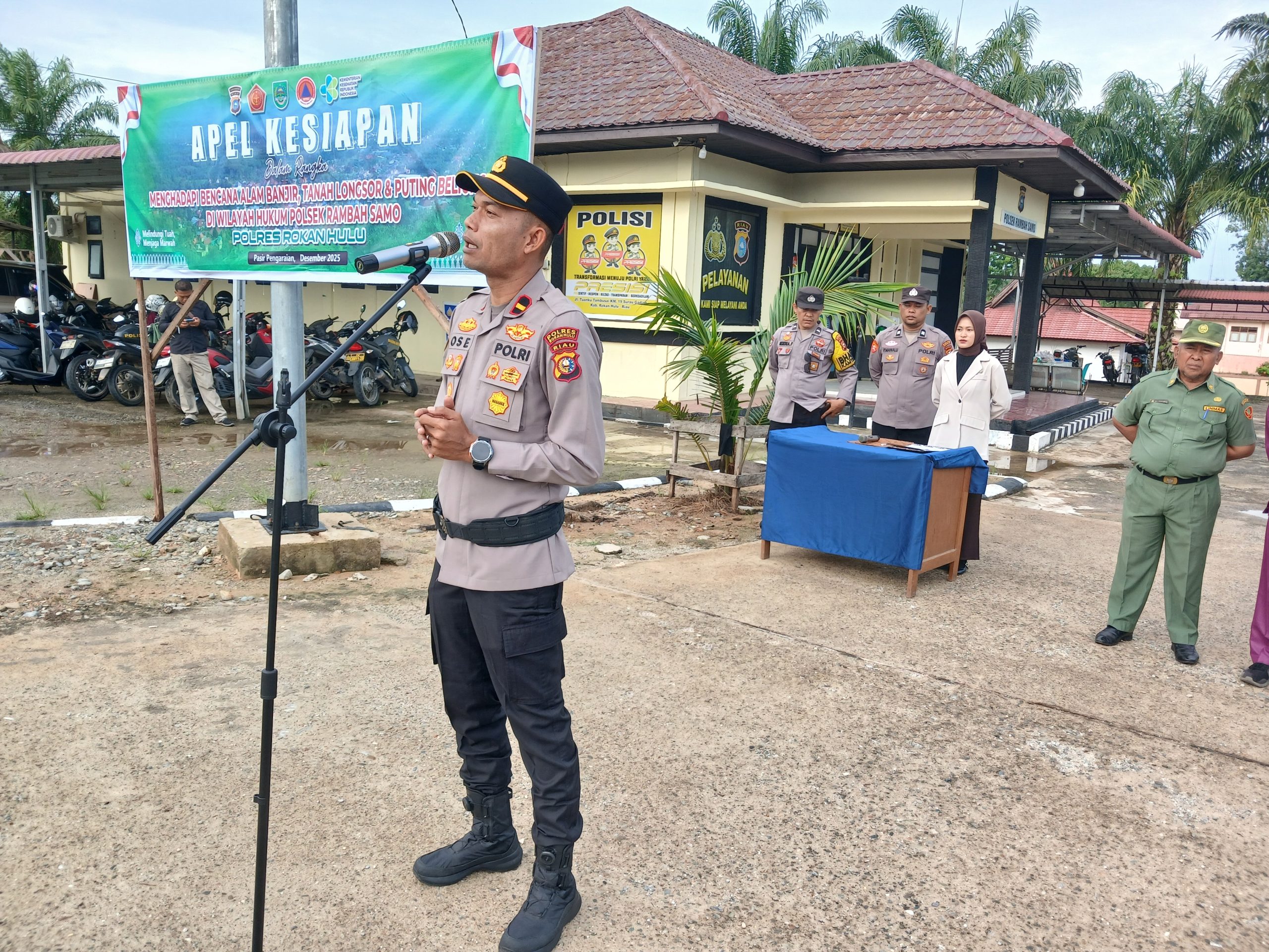 ROKAN HULU, SUARARAKYAT62 — Kapolsek Rambah Samo, Ipda Sarlose Mesra, SH memimpin Apel Kesiapan dalam rangka menghadapi potensi bencana alam seperti banjir, tanah longsor dan angin puting beliung di wilayah hukum Polsek Rambah Samo.