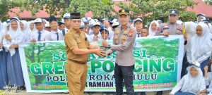 Usai upacara, kegiatan dilanjutkan dengan penanaman pohon di lingkungan sekolah yang melibatkan seluruh siswa, siswi, guru, serta Kapolsek Rambah Samo. Kegiatan ini menjadi bentuk edukasi sekaligus ajakan untuk peduli terhadap lingkungan sejak usia sekolah.
