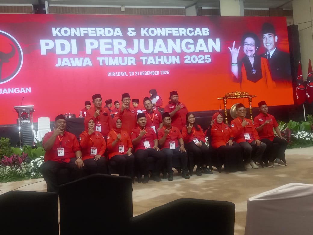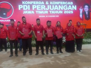 Kota Pasuruan, SuaraRakyat62.com – Konferensi Daerah (Konferda) dan Konferensi Cabang (Konfercab) PDI Perjuangan Jawa Timur yang digelar pada 20–21 Desember 2025 di Surabaya resmi menetapkan kepengurusan baru DPC PDI Perjuangan Kota Pasuruan periode 2025–2030. Dari hasil forum tersebut, Mahfud Husairi, S.T. ditetapkan sebagai Ketua DPC, didampingi Tatit Panji, S.I.Kom sebagai Sekretaris dan Andri Setyani sebagai Bendahara.