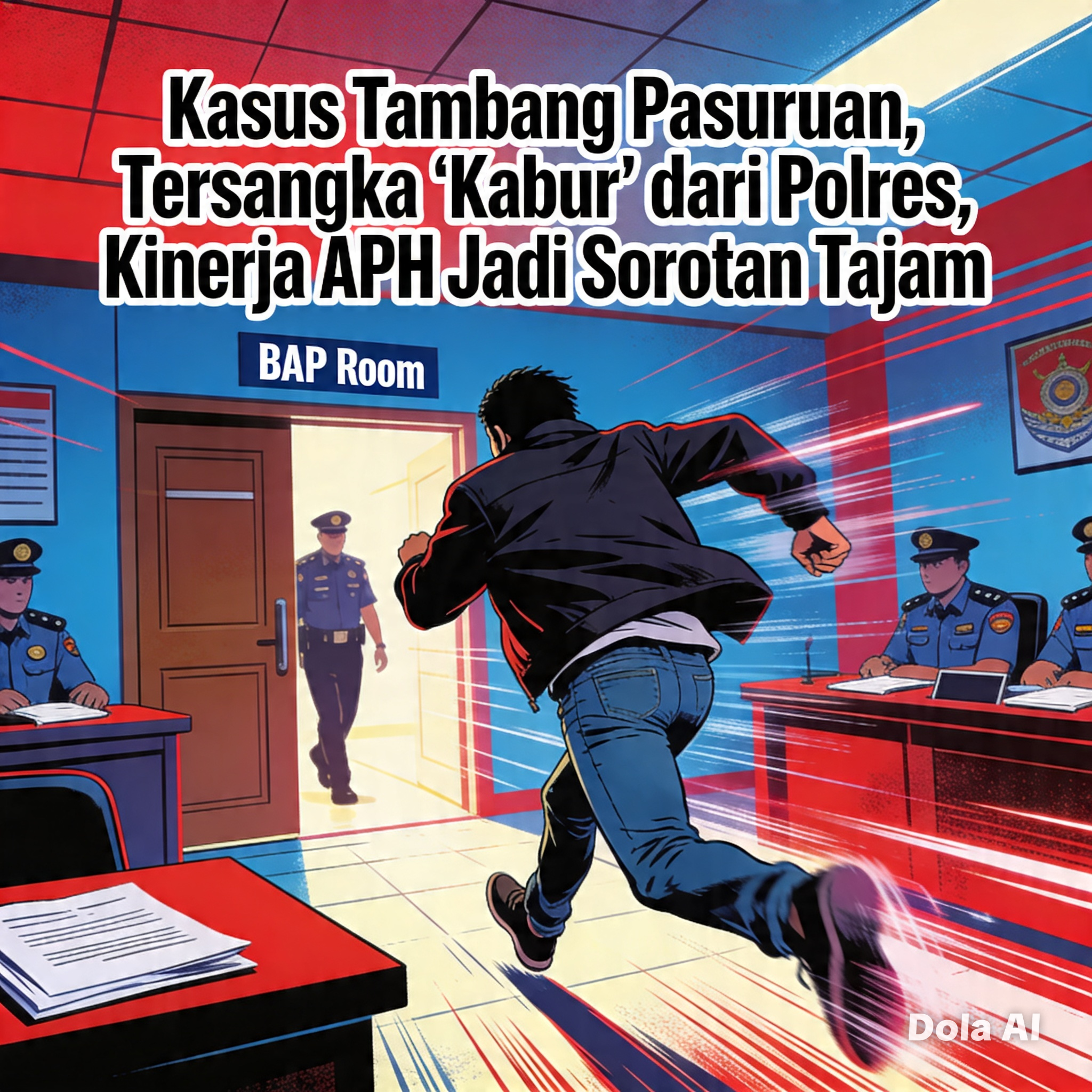 Penanganan kasus dugaan tambang batu ilegal di Desa Kertosari oleh Polres Pasuruan kembali menuai sorotan. Kali ini, sorotan tertuju pada “kaburnya” H.SLH, seorang kades aktif yang berstatus tersangka, dari Mapolres Pasuruan (17/4).