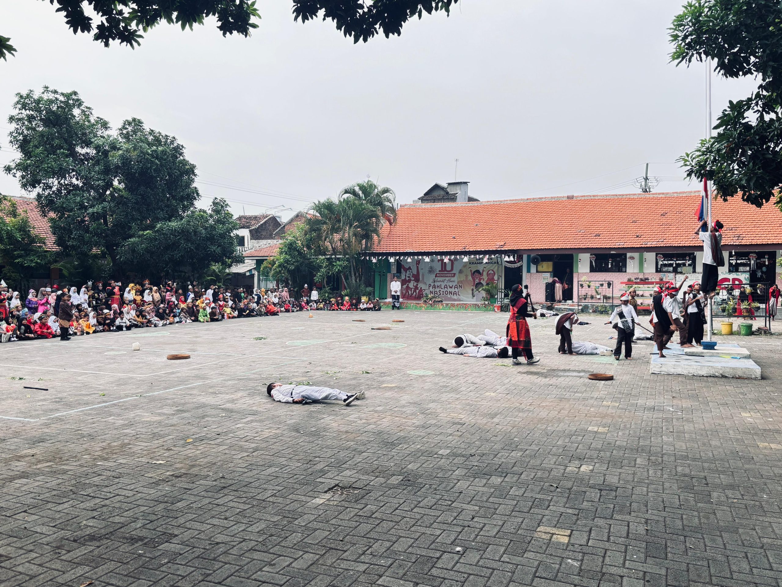 Suasana sekolah tampak meriah. Seluruh siswa dari kelas 1 hingga kelas 6 hadir mengenakan batik, kebaya, dan pakaian khas Nusantara. Salah satu kegiatan paling menarik perhatian adalah drama teatrikal perjuangan, menampilkan momen heroik saat rakyat berhasil mengibarkan bendera Merah Putih dan menurunkan bendera Belanda, simbol kemenangan dan keberanian bangsa Indonesia merebut kemerdekaan.