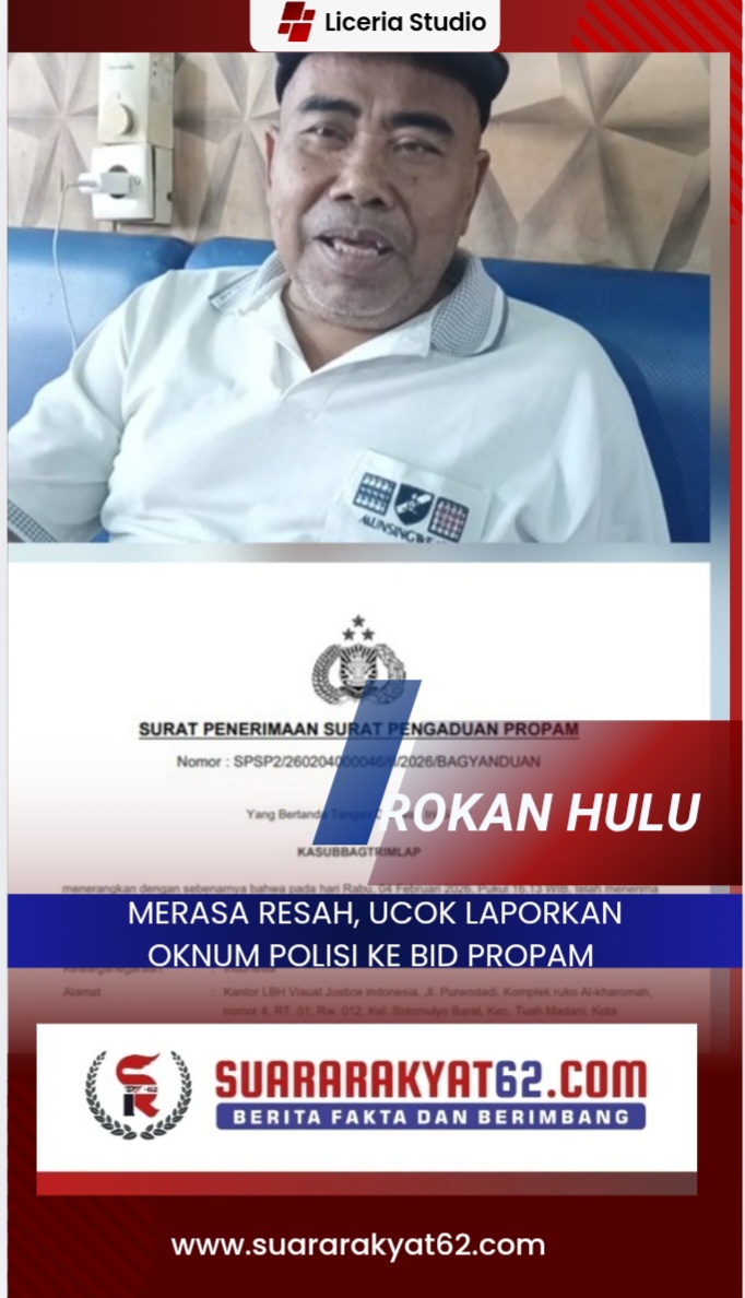Laporan tersebut disampaikan oleh Ucok Bahagia kepada wartawan Suararakyat62.com usai anak kandung Ucok membuat Dumas resmi ke Propam Mabes Polri melalui Kuasa hukumnya, Sabtu(7/2/2026).