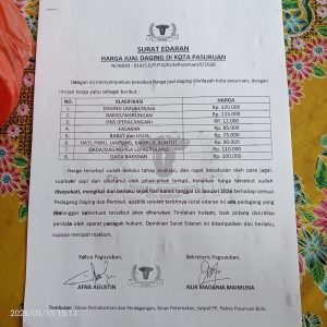 Surat edaran tersebut ditandatangani oleh Afna Agustin selaku Ketua Paguyuban dan Nur Madania Maimuna sebagai Sekretaris, serta ditembuskan kepada Dinas Perindustrian dan Perdagangan, Dinas Peternakan, Satpol PP, dan Polres Pasuruan Kota.
