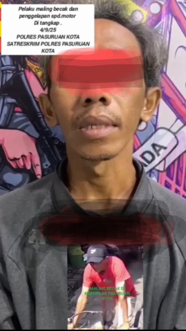 Kota Pasuruan, SuaraRakyat62.com – Pelaku pencurian becak di Kelurahan Ngemplakrejo, Kota Pasuruan, yang sempat viral pada 8 Agustus 2025 lalu, akhirnya berhasil ditangkap polisi.