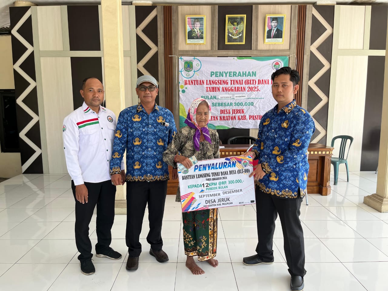 Penyaluran BLT Dana Desa (DD) sebanyak 12 penerima manfaat periode September–Desember di Desa Jeruk, Kecamatan Kraton, Kabupaten Pasuruan, berjalan lancar dan tertib, Rabu (17/12).
