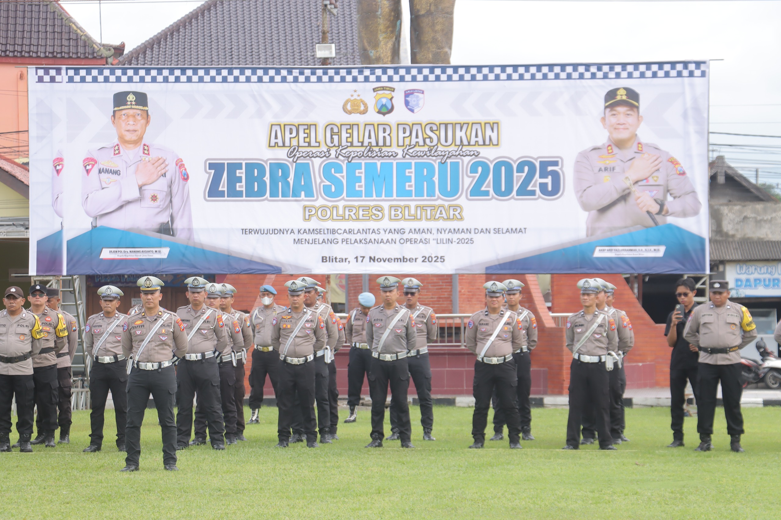 Blitar, SuaraRakyat62.com – Polres Blitar menggelar Apel Gelar Pasukan Operasi Zebra Semeru 2025 yang menandai dimulainya operasi kepolisian selama 14 hari, mulai 17 hingga 30 November 2025. Apel ini melibatkan TNI, Pemerintah Daerah, serta berbagai stakeholder sebagai bentuk sinergi menjaga keamanan dan ketertiban lalu lintas di Kabupaten Blitar, Senin (17/11/2025).