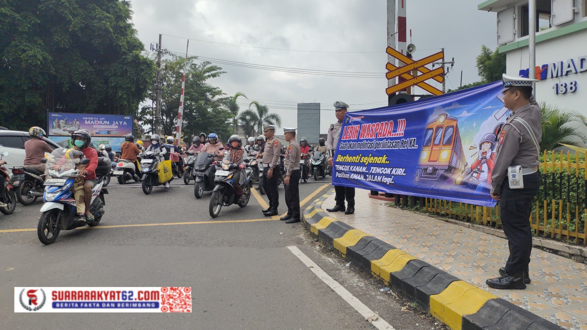 Kota Madiun, SuaraRakyat62.com – Satuan Lalu Lintas (Satlantas) Polres Madiun Kota menggelar sosialisasi keselamatan berlalu lintas (Kamseltibcarlantas) kepada masyarakat di sekitar perlintasan kereta api Jalan Yos Sudarso, Jumat pagi. Kegiatan ini dilaksanakan sebagai respons atas insiden kecelakaan yang sebelumnya terjadi di lokasi tersebut.