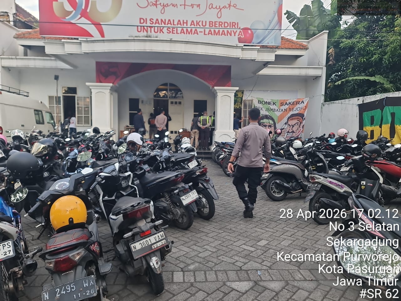 Kota Pasuruan, SuaraRakyat62.com – Profesionalisme aparat kepolisian kembali mendapat apresiasi publik. Jajaran Polsek Purworejo bersama Polres Pasuruan Kota dinilai sukses menjaga keamanan dan ketertiban dalam kegiatan nonton bareng (nobar) Bonek Mania yang digelar di Kantor DPC PDI Perjuangan Sekargadung, Kota Pasuruan, Selasa (28/04/2026).