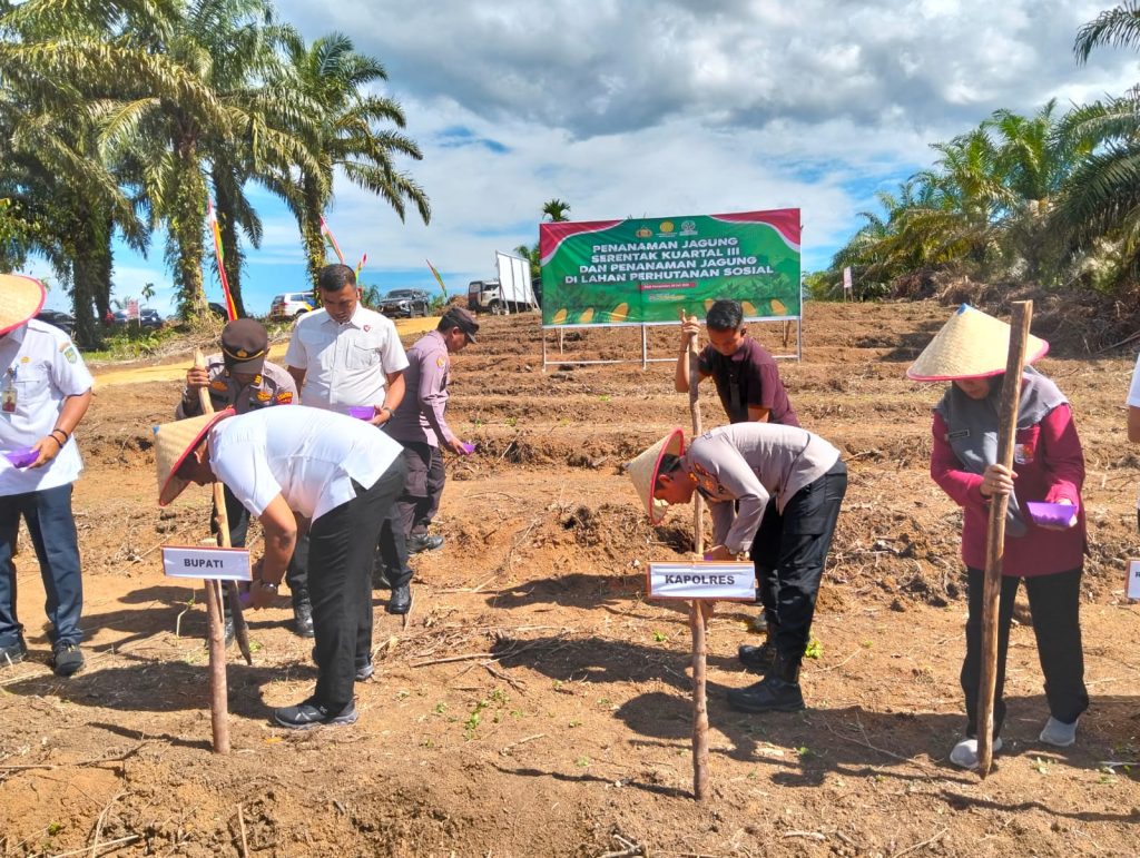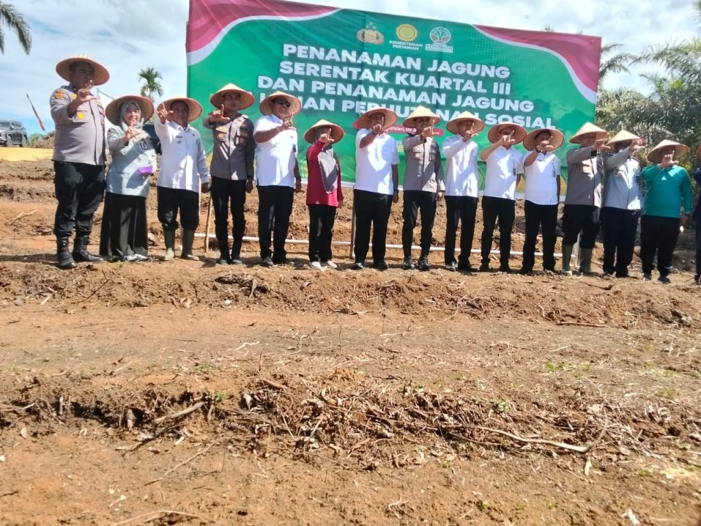 Rokan Hulu, SuaraRakyat62.com – Polres Rokan Hulu menggelar kegiatan penanaman jagung serentak kuartal III di lahan pertanian milik Universitas Rokania, Desa Langkitin, Kecamatan Rambah Samo, Selasa (9/7/2025). Kegiatan ini merupakan bagian dari program nasional ketahanan pangan yang diinisiasi oleh Presiden RI dan didukung penuh oleh Kapolri.