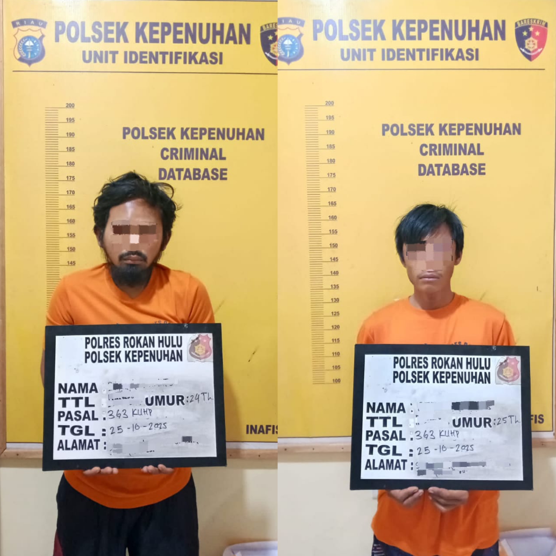 Rokan Hulu, SuaraRakyat62.com – Kepolisian Sektor (Polsek) Kepenuhan, Polres Rokan Hulu, berhasil mengungkap kasus pencurian kendaraan bermotor (Curanmor) roda dua yang terjadi di Desa Muara Jaya, Kecamatan Kepenuhan Hulu, Kabupaten Rokan Hulu. Dalam pengungkapan tersebut, petugas mengamankan dua pelaku asal Pekanbaru beserta barang bukti satu unit sepeda motor hasil curian.