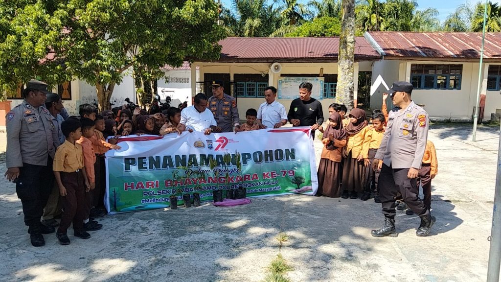 Rokan Hulu, SuaraRakyat62.com –Dalam upaya membangun kesadaran lingkungan sejak dini, Polsek Rambah Samo yang dipimpin Kapolsek Ipda Sarlosea Mesra, SH, melaksanakan kegiatan penanaman pohon dan sosialisasi pentingnya tumbuhan hijau di SDN 017 Desa Lubuk Bilang, Kecamatan Rambah Samo, pada Rabu (16/7/2025).
