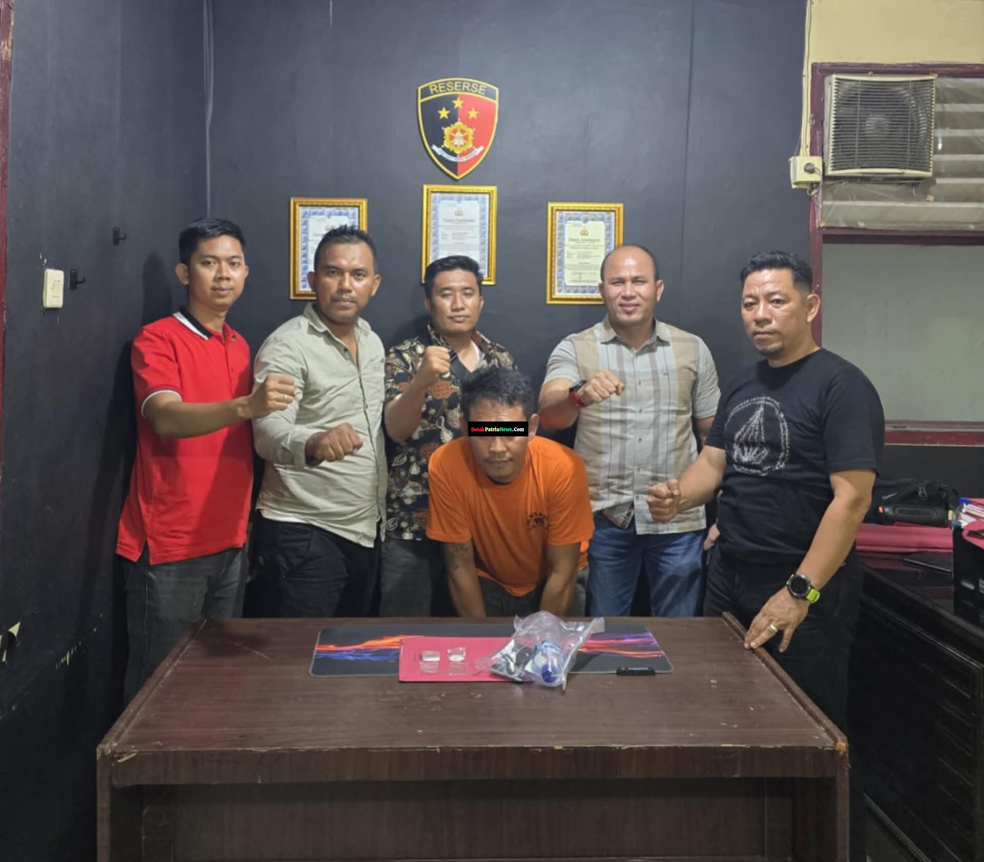 Kanit Reskrim IPTU Sudarto, S.Sos bersama Panit Opsnal AIPTU Fajri, SH dan tim kemudian bergerak cepat. Hasilnya, tersangka ES berhasil diamankan beserta barang bukti berupa dua paket sabu seberat 4,80 gram serta sejumlah alat pendukung lainnya.
