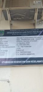 Rehab senilai lebih dari Rp800 juta ini bersumber dari Dana Bagi Hasil Cukai Tembakau (DBHCT) Dinas Kesehatan Kabupaten Pasuruan. Pekerjaan ditangani CV. Tirtoyoso dengan pengawasan dari CV. Karya Mandiri.