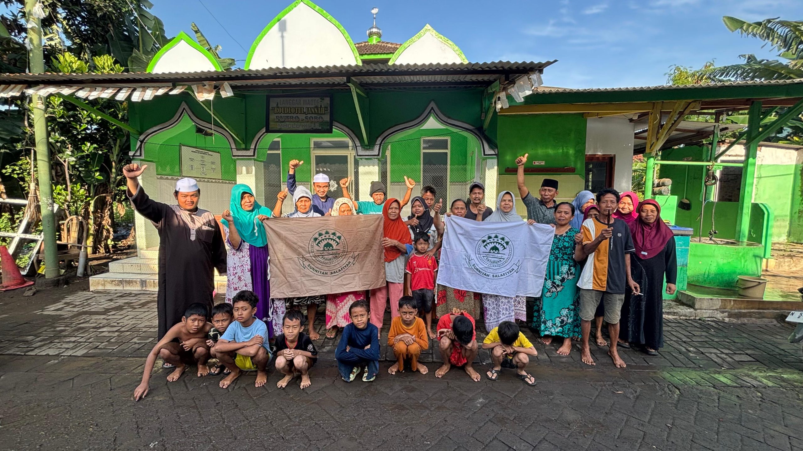 PASURUAN, SUARARAKYAT62. — Santri Pondok Pesantren Suniyah Salafiyah menggelar aksi kemanusiaan dengan membagikan seribu nasi bungkus kepada warga terdampak banjir di Desa Tambakrejo, Kecamatan Kraton, Kabupaten Pasuruan, Selasa (25/11).