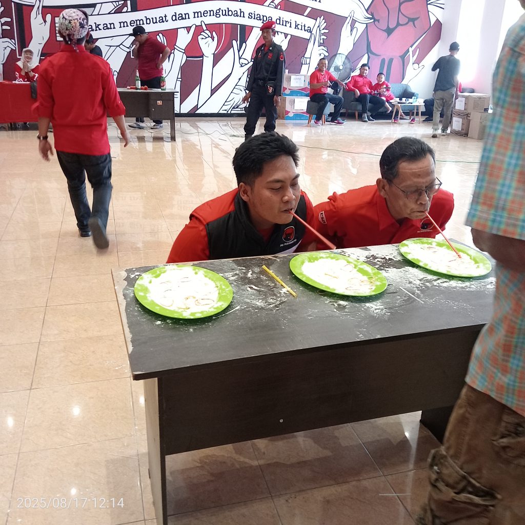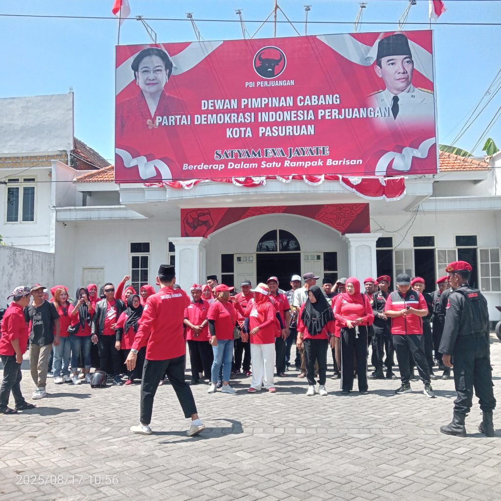 Kota Pasuruan, SuaraRakyat62.com – Dalam rangka memperingati Hari Ulang Tahun (HUT) ke-80 Republik Indonesia yang mengusung tema “Bersatu Berdaulat, Rakyat Sejahtera, Indonesia Maju”, DPC PDI Perjuangan Kota Pasuruan menggelar upacara bendera sekaligus berbagai perlombaan rakyat. Acara berlangsung meriah dan penuh semangat kebersamaan di Kantor DPC PDI Perjuangan Kota Pasuruan, Jalan KH. Mas Mansyur No.3, Kelurahan Sekargadung, Minggu (17/8/2025).