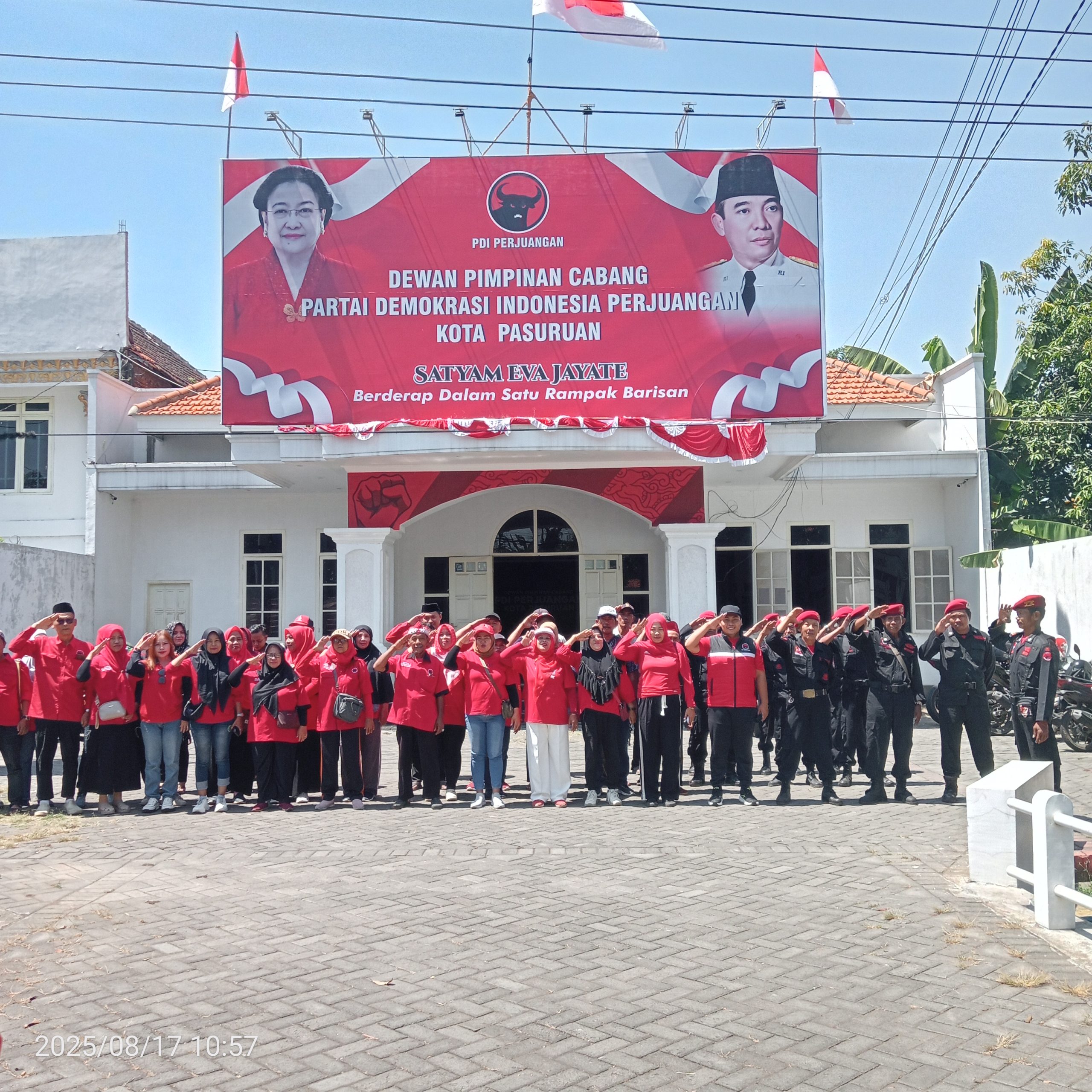Upacara bendera dipimpin oleh Komandan Satgas, Waluyo, dengan khidmat. Seluruh jajaran pengurus PDI Perjuangan se-Kota Pasuruan, termasuk Fraksi PDI Perjuangan DPRD Kota Pasuruan, turut hadir mengikuti upacara. Usai pengibaran bendera, acara dilanjutkan dengan perlombaan rakyat yang mengundang antusiasme kader dan masyarakat.