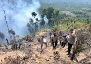 Medan Terjal dan Sumber Air Minim, Polres Rohul Tetap Lakukan Pemadaman