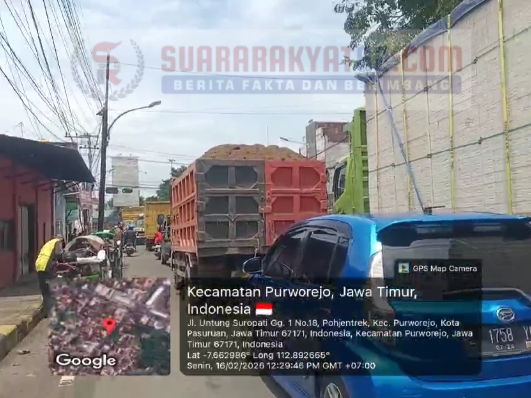 Di Simpang Empat Kebonagung yang menghubungkan arah jantung kota Pasuruan, truk-truk pengangkut material uruk terlihat terus menerus lalu lalang pada hari ini, Senin (16/2/2026). Kondisi yang mencolok dan mengganggu adalah tidak satu pun dari kendaraan tersebut yang dilengkapi dengan terpal penutup yang rapat, sehingga material berupa tanah urug dan kerikil sering berhamburan saat melintas serta terbawa angin menyebar ke seluruh permukaan jalan dan sekelilingnya.